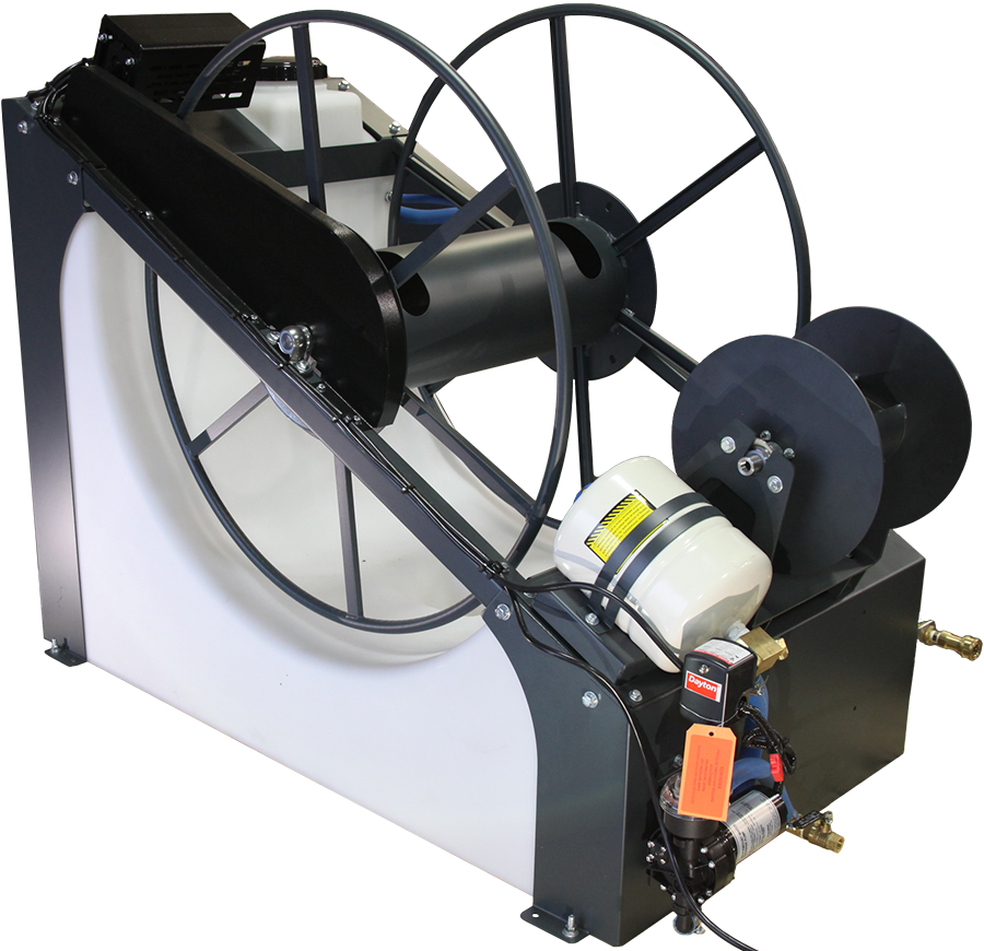 Water Pond is the cleaning and restoration industry's #1 selling fresh water tank! Featuring the ultimate combination of capacity, hose reels, and space saving design, the Water Pond has 120-gallon fresh water capacity for all day cleaning and an integrated 250-foot powered-retrieve vacuum hose reel and a 250-foot solution reel. The durable rotomolded polyethylene tank with steel frame and hose reel is designed to provide years of trouble free service. Easy installation in most vehicles - can be positioned for side or rear door access.